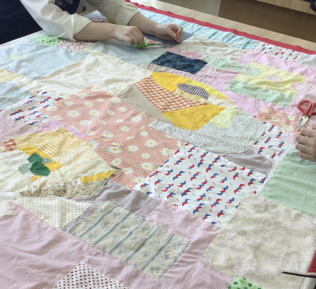 今年は、新1年生4人が加わり、計14人で活動が始まりました。ただ今、キルト制作に挑戦しています。原画は、毎年「シフォンケーキの会」で掲示されていたポスターです。2学期までの完成を目指して頑張ります(^○^)/ キルトの原画(卒業された先輩が描いてくださった掲示用ポスター)